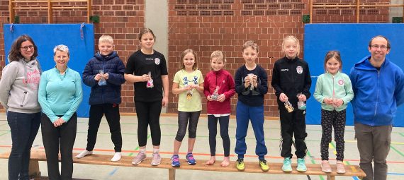 Alle Kinder, die nicht auf dem Siegertreppchen standen, wurden letzte Woche mit einer kleinen Aufmerksamkeit geehrt – als Zeichen der Wertschätzung für ihren Einsatz und ihre sportliche Haltung. Denn jede und jeder von ihnen hat an diesen Tagen gezeigt, was es bedeutet, fair zu kämpfen, einander zu unterstützen und über sich hinauszuwachsen. Trainerin Claudia Walter fertigte in ihrer Freizeit kleine gehäkelte Tiere als Schlüsselanhänger an. Passend dazu spendierte Andreas Kiermeier, der Leiter der TSV-Kinderleichtathletik, jedem Kind einen Kinogutschein als kleines Geschenk.